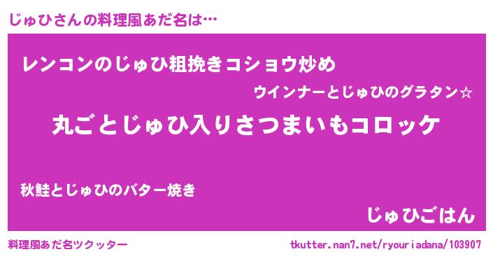 | 意味不明あだ名 | 『住所不定無職じゅひ(93歳)』『自称じゅひ』 |