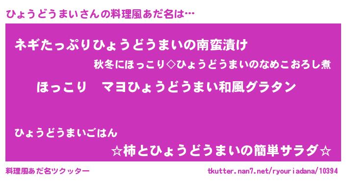 | 意味不明あだ名 | 『住所不定無職ひょうどうまい(98歳)』 |