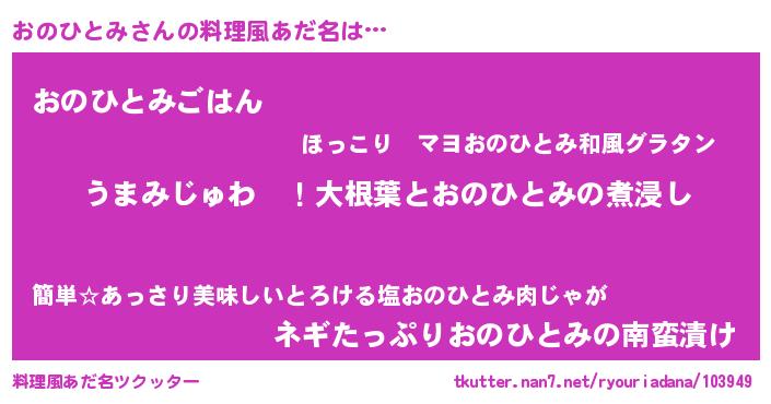 | ファンタジー風あだ名 | 『エターナルオノヒトミー』『オノフェル』 |