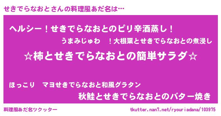| 意味不明あだ名 | 『自称せきでらなおと』 |