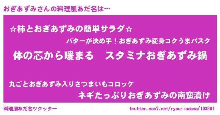 | 欧米人風あだ名 | 『おぎあずみクリステル』 |