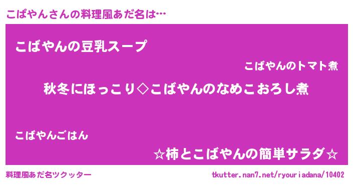 | ピコ太郎風あだ名 | 『コバ一郎』『ココ太郎』『ココ四郎』 |