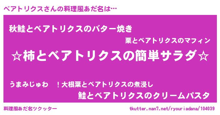 | ヘコむあだ名 | 『ベアトリクス(笑)』『なまこ酢』 |