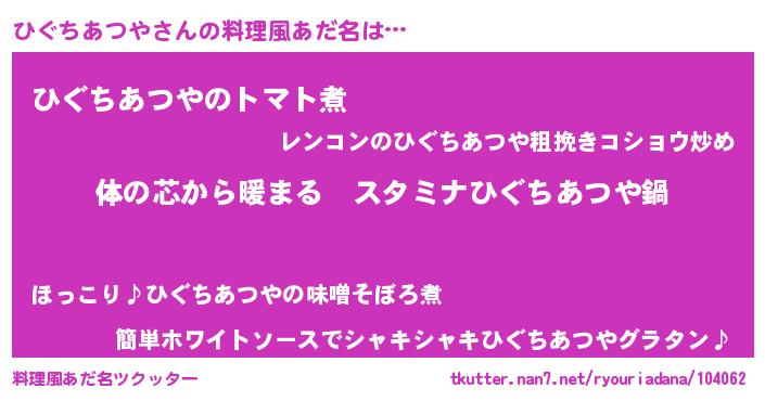 | 意味不明あだ名 | 『ひぐちあつやフォーエバー』 |
