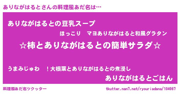 | 男性向けラノベタイトル風あだ名 | 『冴えないありながはるとの育てかた』 |