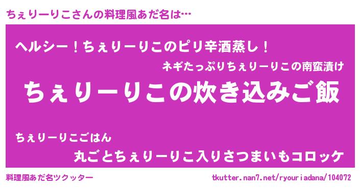 | 胡散臭い通販商品みたいなあだ名 | 『芸能人もオススメする高麗人参…その名も「ちぇりーりこ」』 |