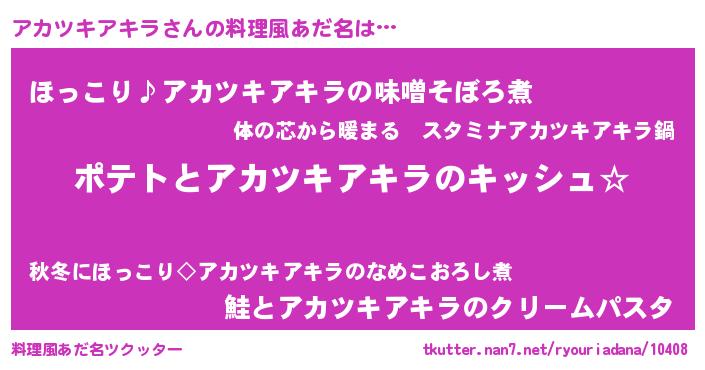 | 意味不明あだ名 | 『とにかく怪しいアカツキアキラ』 |