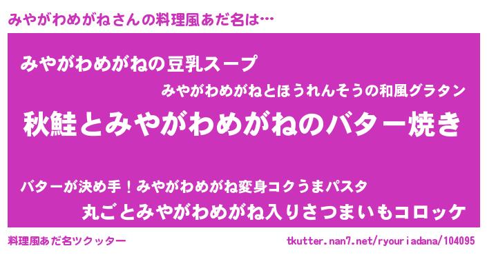 | 胡散臭い通販商品みたいなあだ名 | 『来世でも幸せになれる健康食品…その名も「みやがわめがね」』 |