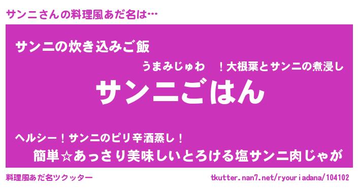 | 胡散臭い通販商品みたいなあだ名 | 『絶対に幸福をもたらす健康食品…その名も「サンニ」』 |