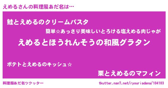 | 意味不明あだ名 | 『ニラ科えめる属』『永久保存えめる』 |