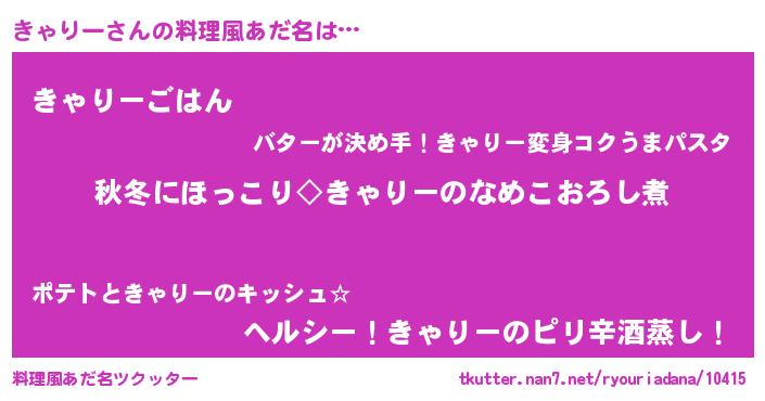 | 男性向けラノベタイトル風あだ名 | 『きゃりーに滅ぼされるだけの簡単なお仕事です』 |