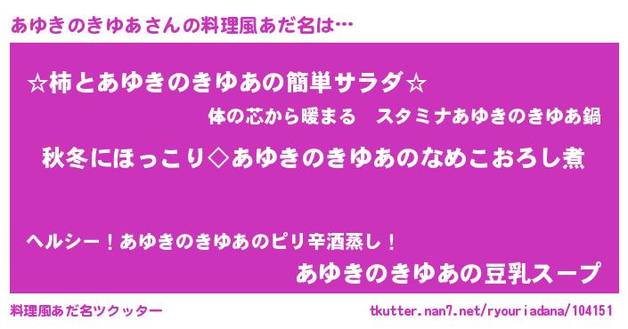 | 意味不明あだ名 | 『とにかく怪しいあゆきのきゆあ』 |