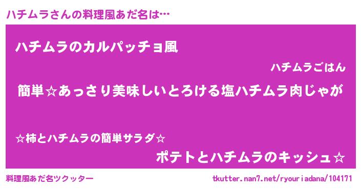 | 意味不明あだ名 | 『永久保存ハチムラ』『自称ハチムラ』 |