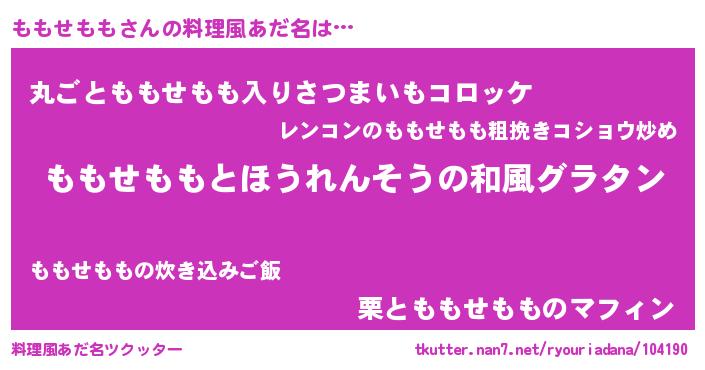 | 男性向けラノベタイトル風あだ名 | 『転生したらももせももだった件』 |