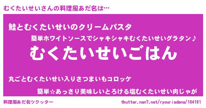| 意味不明あだ名 | 『たけのこ科むくたいせい属』 |
