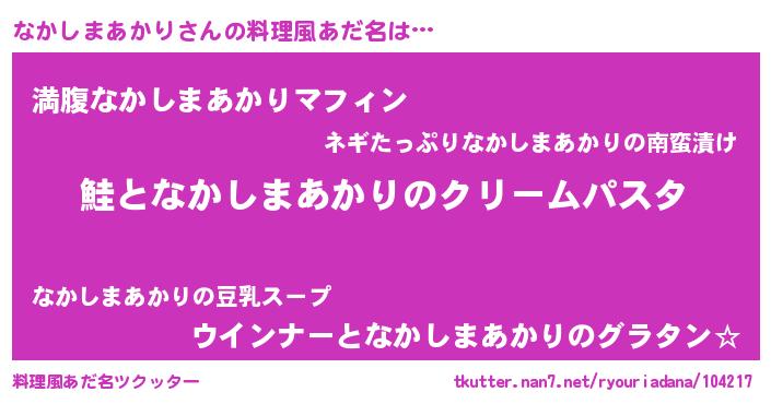 | 男性向けラノベタイトル風あだ名 | 『ノーゲーム・ノーナカシマアカリ』 |
