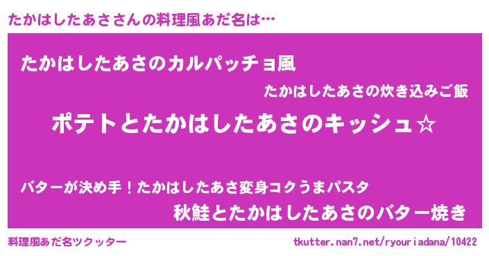| 女子向けラノベタイトル風あだ名 | 『たかはしたあさの卵を拾いまして』 |