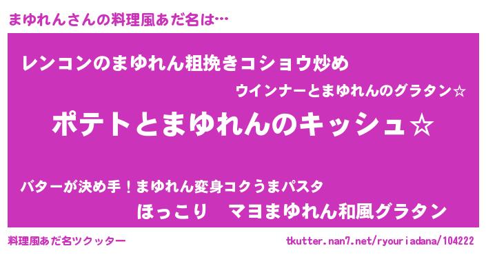 | ヒーロー風カッコイイあだ名 | 『銀牙騎士マユ』『ウルトラ戦士マユレン』 |