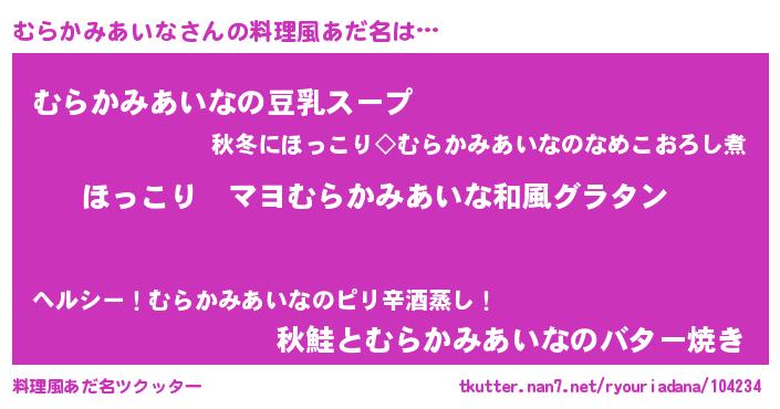 | 女子向けラノベタイトル風あだ名 | 『悪役むらかみあいなに転生したようですが、知った事ではありません』 |
