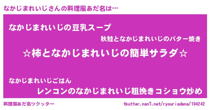 | 胡散臭い通販商品みたいなあだ名 | 『信頼と実績のサプリメント…その名も「なかじまれいじ」』 |