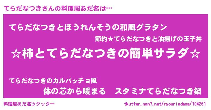 | ヘコむあだ名 | 『つくし』『てらふぇ~』『てらっぺ』 |