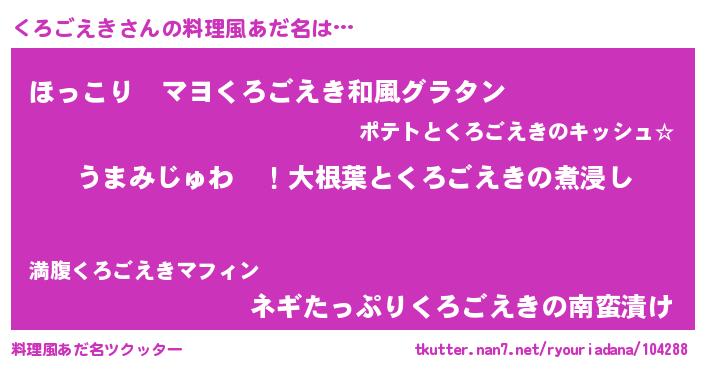 | 恥ずかしいあだ名 | 『くろっちょ』『プリティーくろごえき』 |