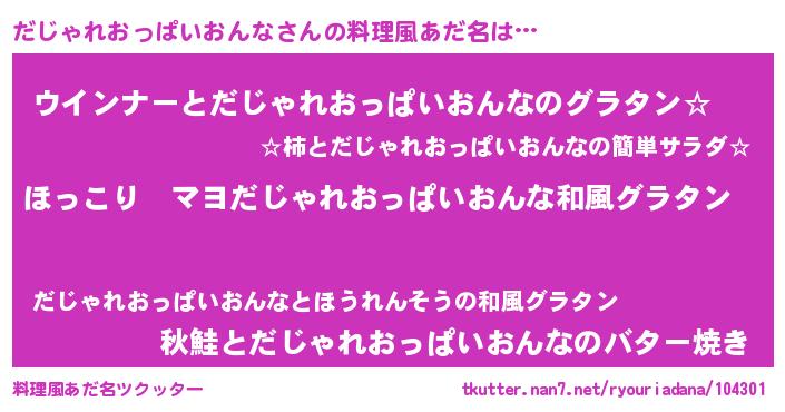 | 意味不明あだ名 | 『住所不定無職だじゃれおっぱいおんな(71歳)』 |