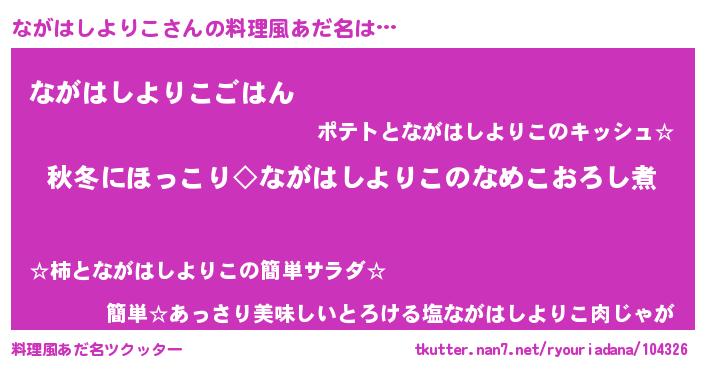 | 男性向けラノベタイトル風あだ名 | 『ながはしよりこに滅ぼされるだけの簡単なお仕事です』 |