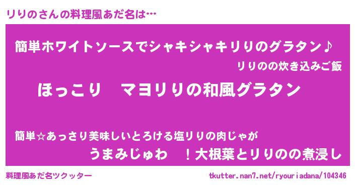 | ヘコむあだ名 | 『リりっちょ』『豆乳』『リりの(笑)』 |