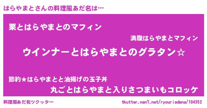 | ヘコむあだ名 | 『なまこ酢』『はらやまと(笑)』 |