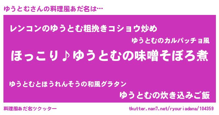 | 男性向けラノベタイトル風あだ名 | 『ゆうとむの憂鬱』『魔弾の王とゆうとむ』 |