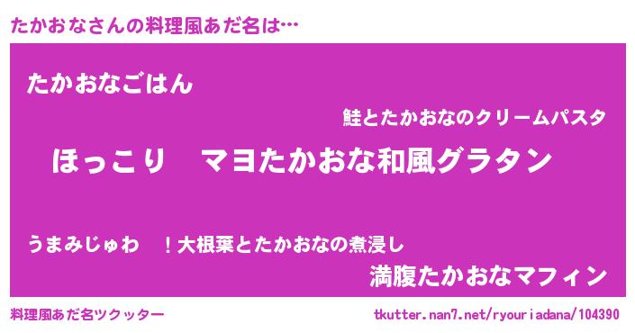 | ヘコむあだ名 | 『たかおな(笑)』『牛乳』『たかっぺ』 |