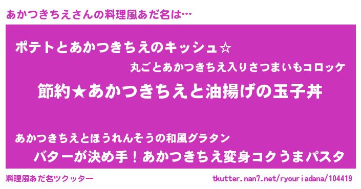 | ヒーロー風カッコイイあだ名 | 『スーパーアカツキチエ』『魔戒騎士アカ』 |