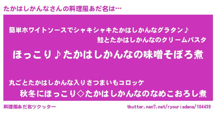 | ポケモン風あだ名 | 『タカチュウ』『ヒタカハシカンナ』 |