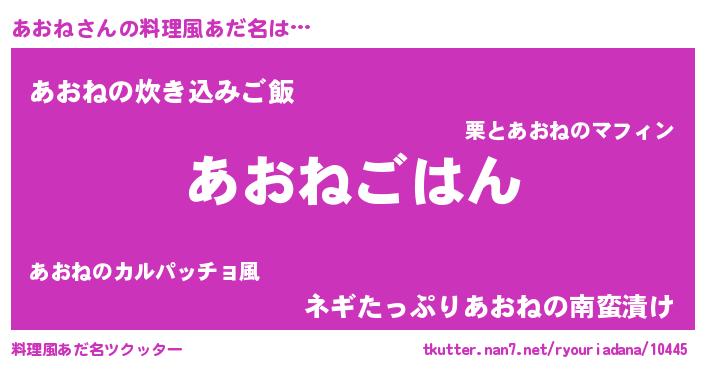 | 男性向けラノベタイトル風あだ名 | 『アオネスレイヤー』『魔弾の王とあおね』 |