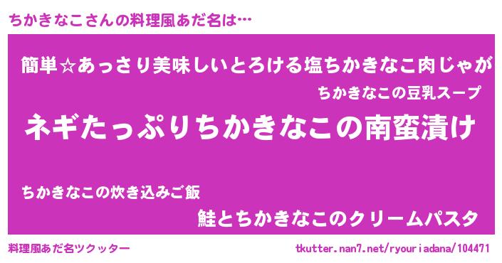 | ヘコむあだ名 | 『ちかにゅー』『ちかきなこ(笑)』 |