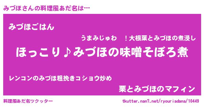 | 男性向けラノベタイトル風あだ名 | 『みづほの憂鬱』『はたらくみづほさま!』 |
