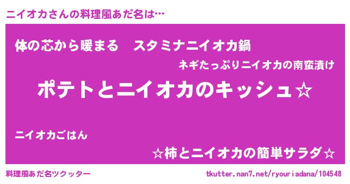 | ポケモン風あだ名 | 『ヒニイオカ』『ニイオダネ』 |