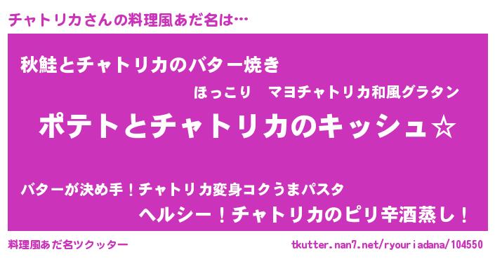 | ヘコむあだ名 | 『チャっ子』『チャトリカ(笑)』 |