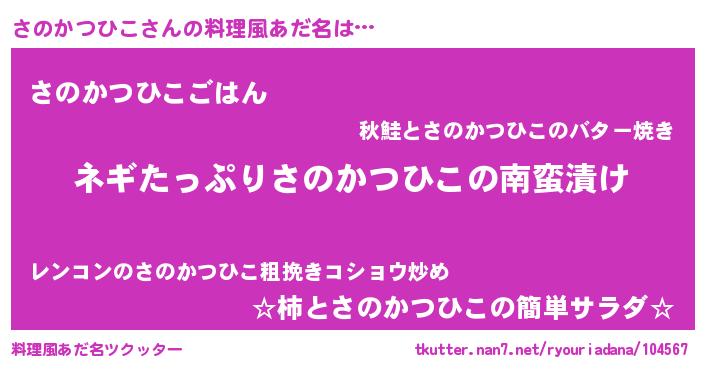 | 女子向けラノベタイトル風あだ名 | 『誰かこのさのかつひこを説明してください! ~契約から始まるウェディング~』 |