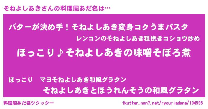 | ヘコむあだ名 | 『そねにー』『そねよしあき(遠い目)』 |