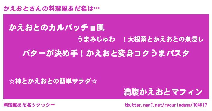 | ヘコむあだ名 | 『かえおと(笑)』『牛乳』『かえお』 |