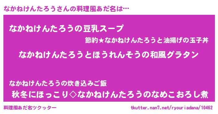 | 女子向けラノベタイトル風あだ名 | 『なかねけんたろうの玉の輿計画!』 |