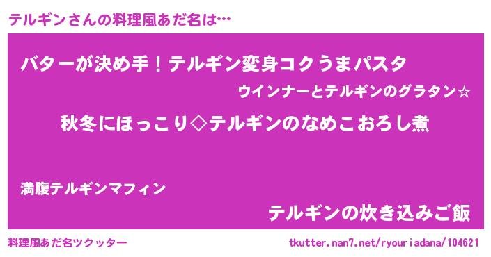 | 男性向けラノベタイトル風あだ名 | 『テルギンに滅ぼされるだけの簡単なお仕事です』 |