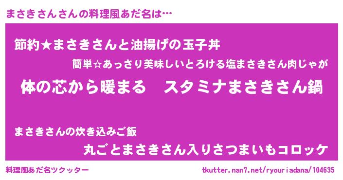 | ファンタジー風あだ名 | 『エターナルマサキサンー』『マサフェル』 |