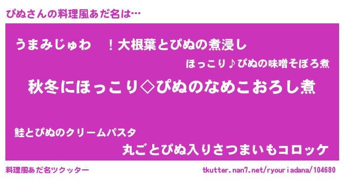 | 男性向けラノベタイトル風あだ名 | 『ぴぬに滅ぼされるだけの簡単なお仕事です』 |