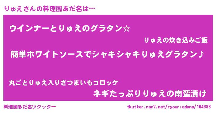 | ヘコむあだ名 | 『りゅぷりん』『豆乳』『りゅにー』 |