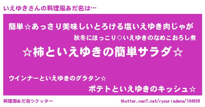 | ヘコむあだ名 | 『いえゆき(笑)』『いえ太郎』『豆乳』 |