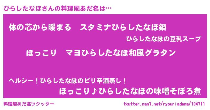 | 男性向けラノベタイトル風あだ名 | 『この素晴らしい世界にひらしたなほを!』 |