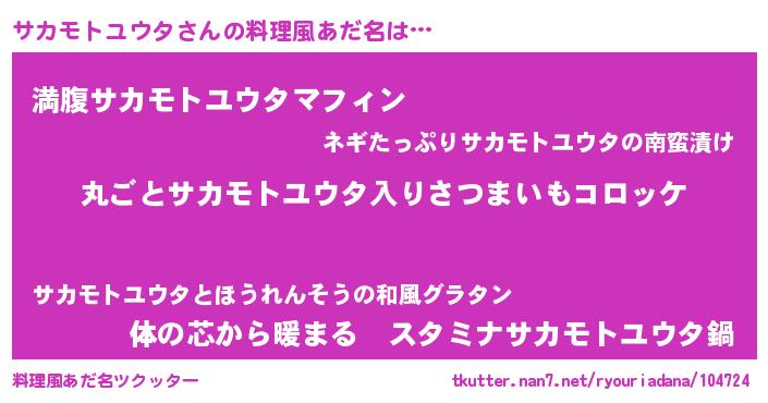| ヘコむあだ名 | 『サカモトユウタ(遠い目)』『豆乳』 |